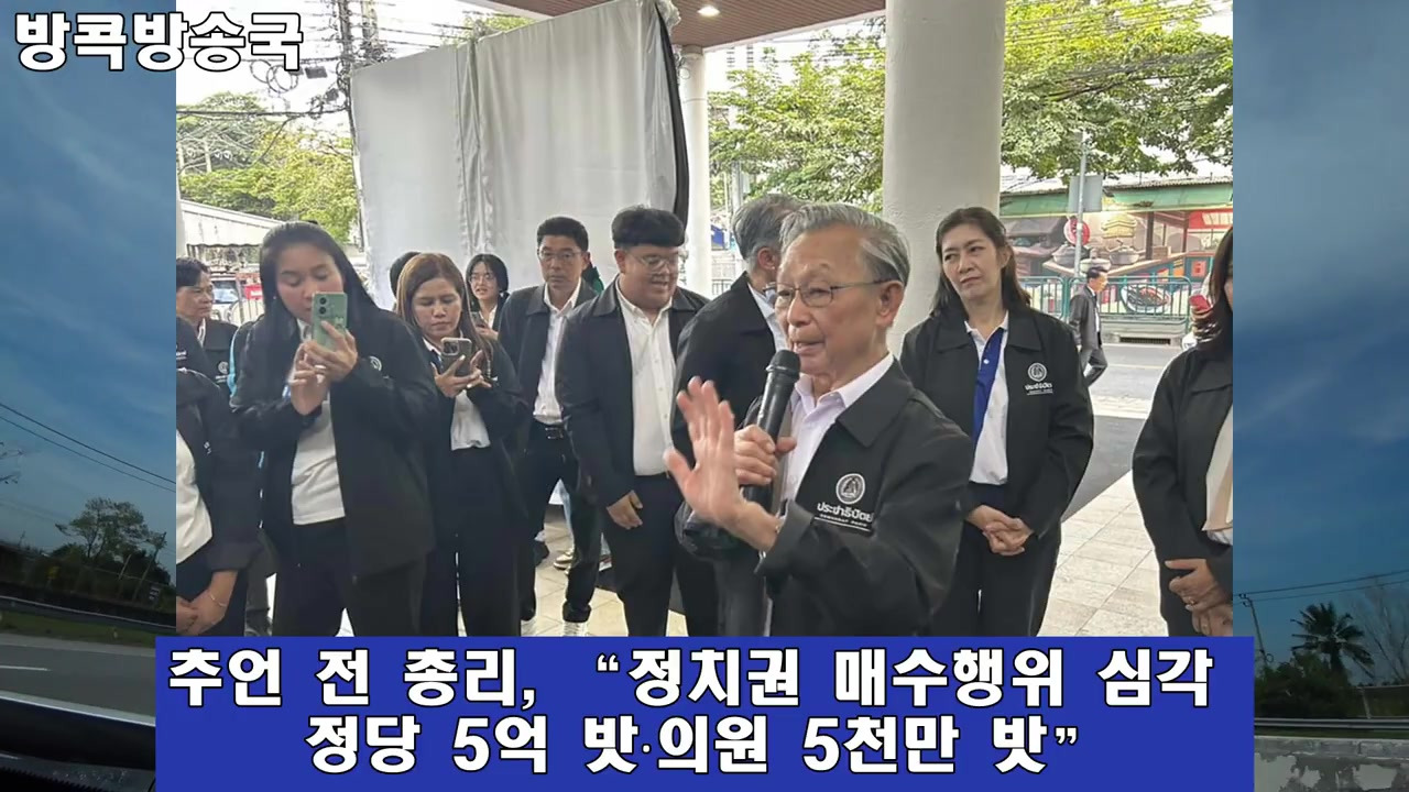 부패 폭로: 추원 전 총리는 중부지역 민주당 후보들과의 간담회에서 정치권에서 더러운 돈이 오가며 정당은 5억 밧, 의원은 5천만 밧에 매수되는 일이 벌어지고 있다고 폭로했습니다.